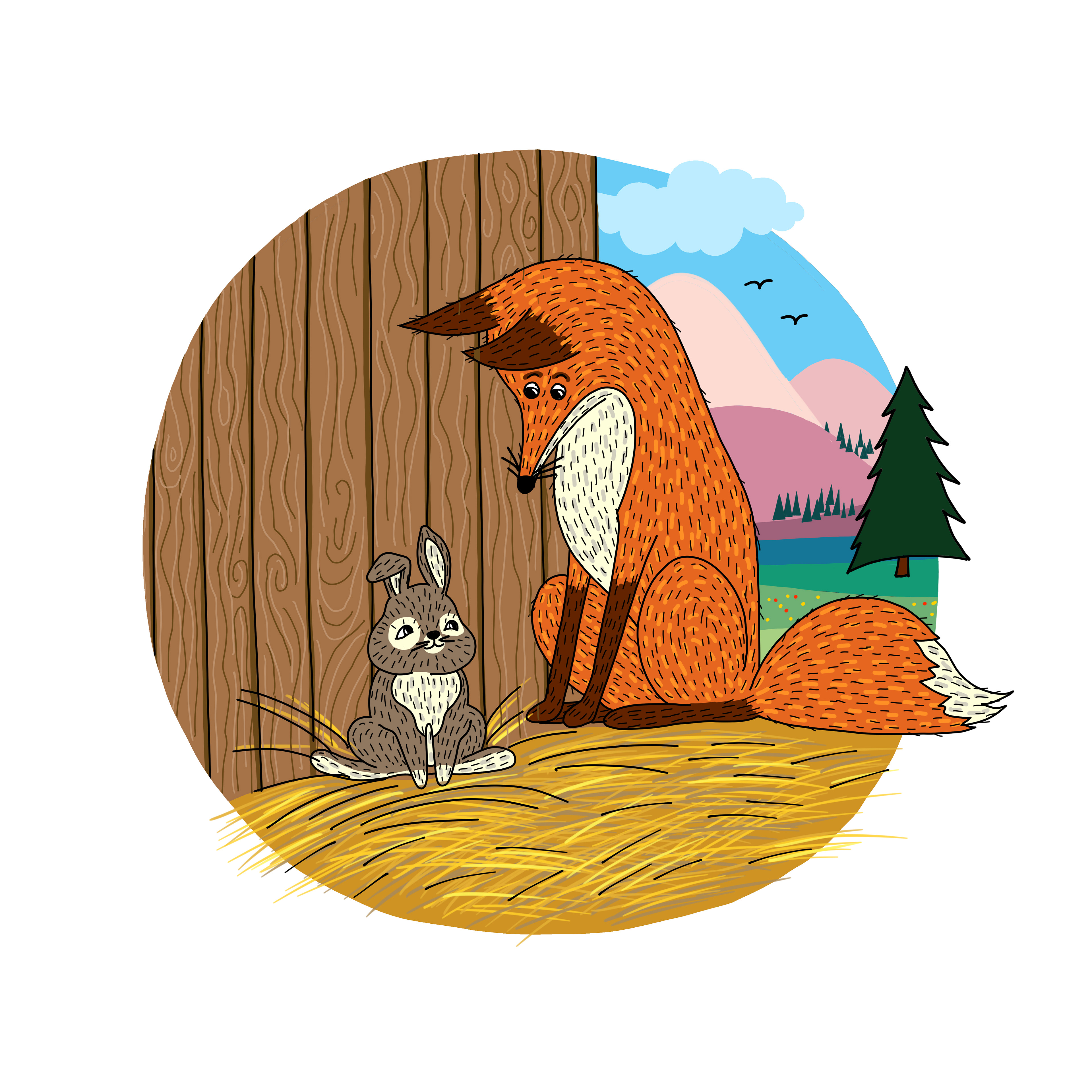 Illustrationen für das Kinderbuch "Mideinand im Bayerwaldhof" von Beate Freitag